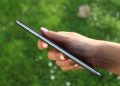 The power and volume rocker are located on the right side. The slot for two SIM cards and MicroSD memory card is on the left.